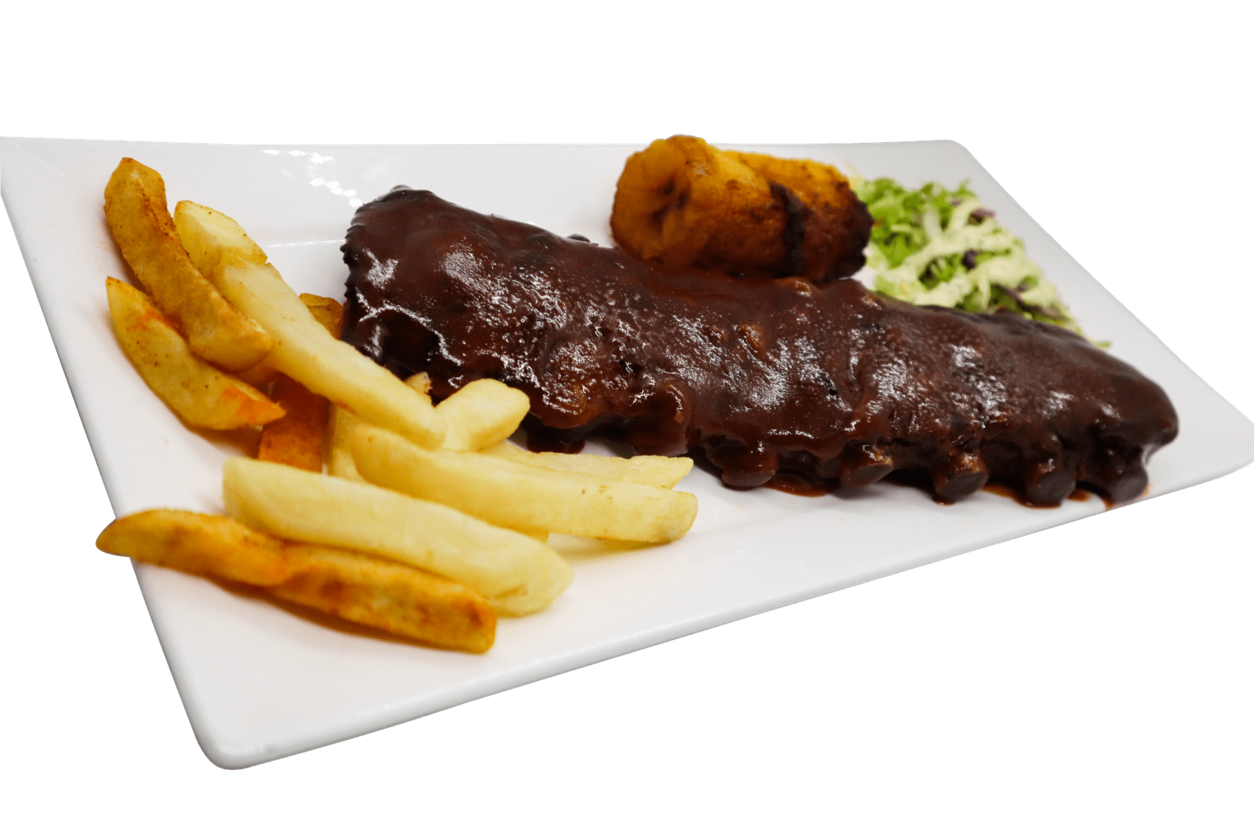 Costilla de cerdo ahumada al horno bañada en salsa a su elección.